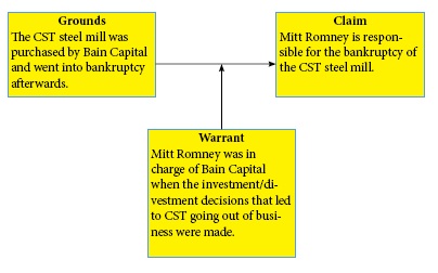 Just as we looked at a negative ad directed at Mitt Romney to see how Toulmin argument maps work, we’ll now look at an ad attacking President Obama to see how to determine and analyze the underlying argument using a traditional syllogism.